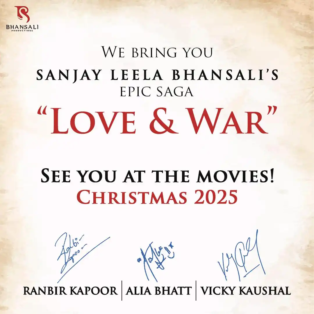 Sanjay Leela Bhansali’s Love & War starring Ranbir Kapoor, Alia Bhatt and Vicky Kaushal is confirmed for a 2026 relea...
